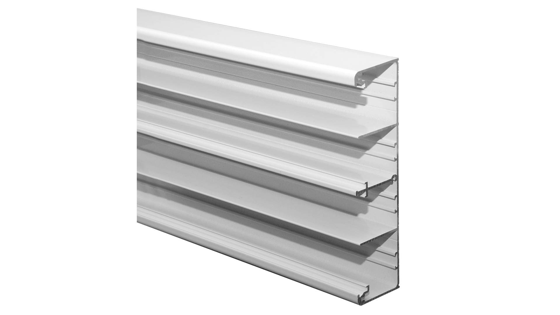 The system is particularly suitable for offices, schools, hospitals, and other public environments where both function and appearance are important. The trunking is designed for easy and quick installation along window sills, window boards, or walls and contributes to a safer working environment by reducing the risk of loose cables.