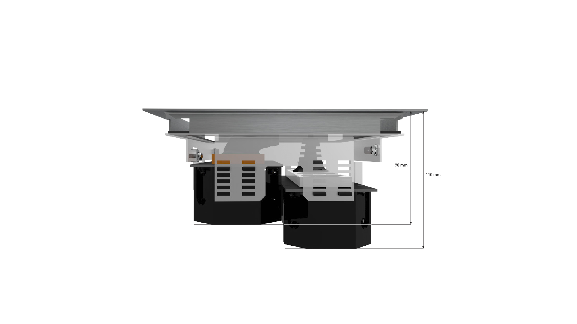 Ruostumattomasta teräksestä valmistettu asennusyksikkö, mattalaippa, kuivasiivottaviin tiloihin, enintään 8 pistorasiamoduulille. Kannen maksimikuorma 150 kg. Kannen täyttösyvyys 12 mm (matto tai parketti).