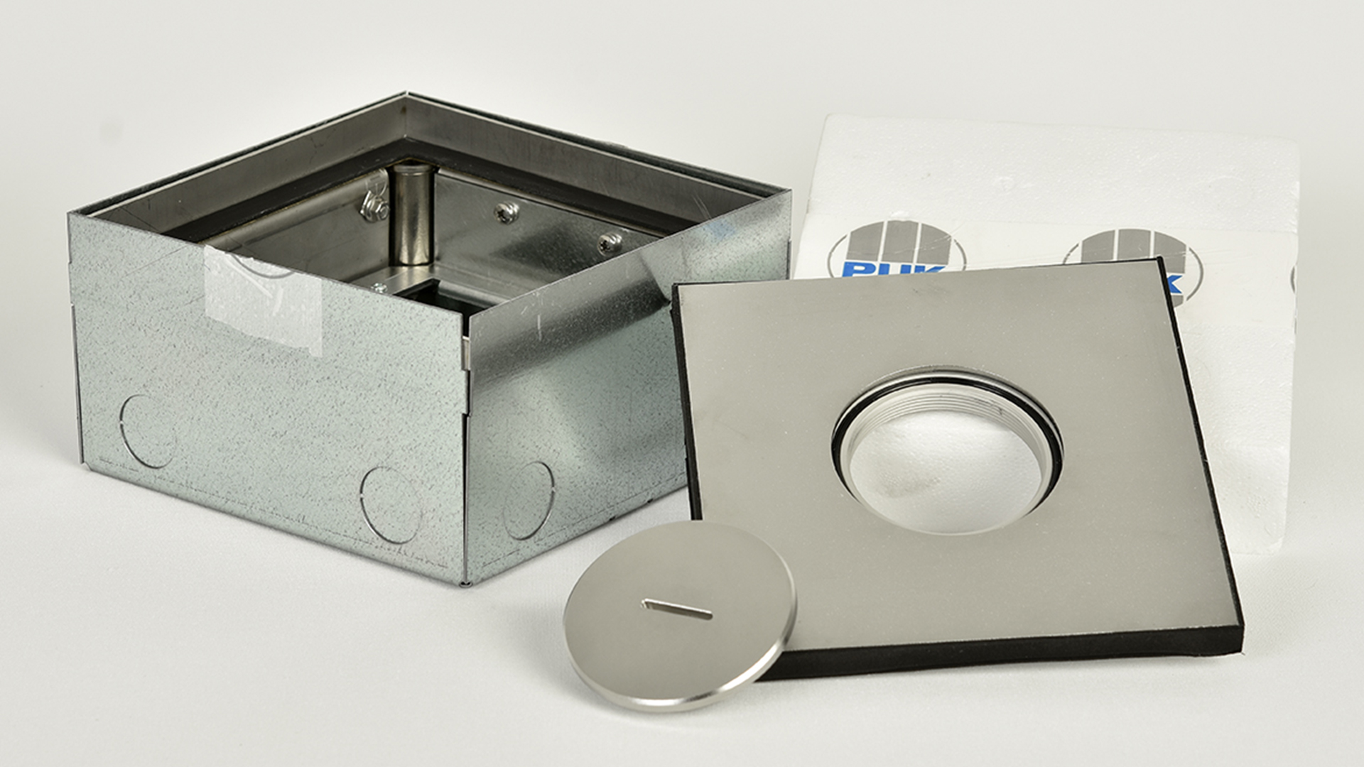Täydellinen lattiarasia sisältää nelikulmaisen valukehyksen sekä valmiiseen lattiaan sovitettavan säädettävän kehyksen. Tilaa 4 yksikölle 45 x 45 mm. Täydennetään tarpeen mukaan voimapistorasian ja RJ 45:n asennuslevyillä. Rasian putkiliitäntöjen läpimitta on 25 mm. Pyöreä kaapelilähtö kumitiivisteineen, suljettuna maks. IP54. Voidaan täydentää putkilähdöllä märkäpuhdistettavia tiloja varten. Kannen maksimikuorma 2 000 kg.
