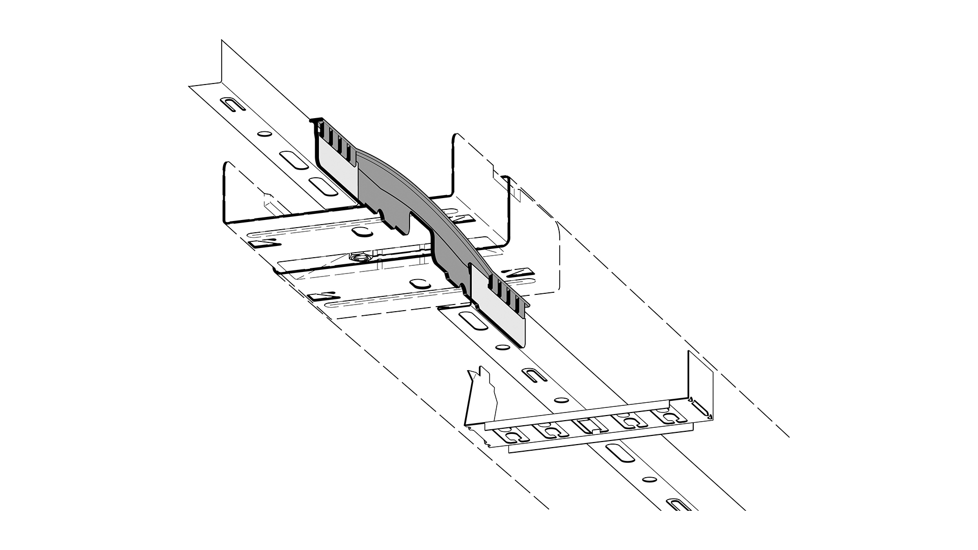 Jatkokappale levyhyllyjen erotuslevyille, käytetään yhtenäisen kanavan muodostamiseen jatkokohdan/kannattimen yli.