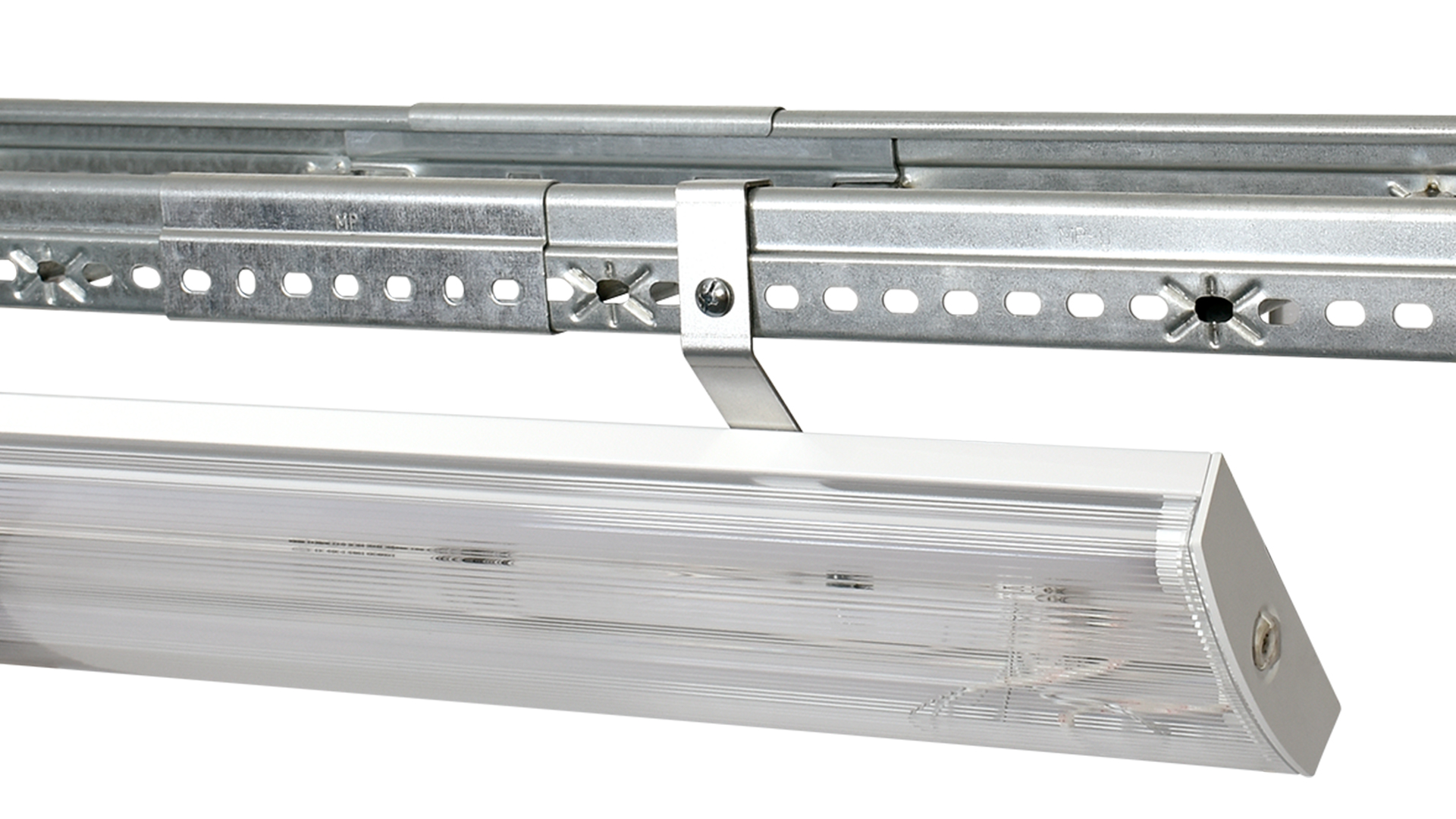 Armaturfäste 45° för montage av armaturer på kabelstege (ej MP-FZ). Fästet hängs på sidan av kabelstegen och låses fast med MP-937 bultsats. Två fästen /armatur åtgår. Korrosivitetsklass max C4.